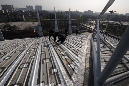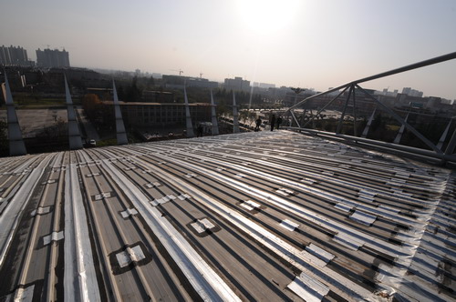 2014年12月1日,我校体育馆屋面处理工程正式竣工验收,学校相关处室负责人、施工单位代表参加了工程验收会。 该工程是对体育馆钢屋面进行防渗漏处理,并对外漏钢架及天沟进行防锈处理,经过现场检查,认为施工企业完成了合同施工内容,满足设计及使用功能要求。